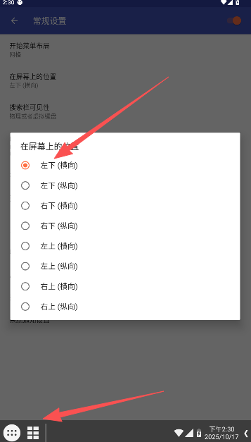 2、比如,小编这里点击让它显示在了屏幕左下方的位置,实际效果也会随之改变,从右往左。