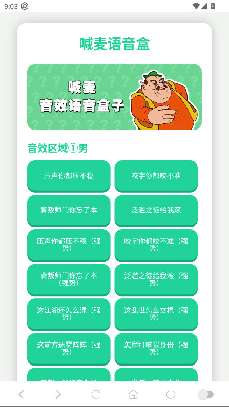 喊麦语音盒app不是普通的音频播放器,而是一个随时待命的欢乐制造机,专门为您打包了最新鲜、最炸裂的喊麦金句和段子。您不需要下载复杂的编辑软件,也不必费力剪辑,只需像打开冰箱找啤酒一样简单,就能迅速定位到那条魔性语音,无论是微信群里分享,还是在同事身边悄悄播放,都能瞬间引爆笑声。您的幽默感,现在可以像按遥控器一样轻松控制了。