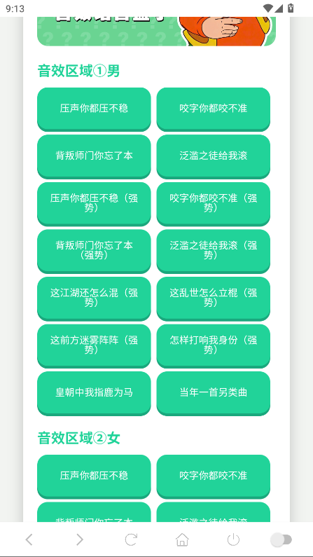 1.打开喊麦语音盒,可以看到音效区域男生板块和音效区域女生板块。
