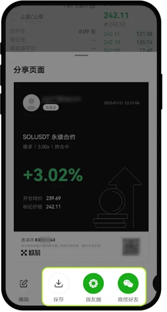 如果您已经持有仓位,点击【仓位和资产】,选择您要分享的订单。点击仓位右上角的分享页面图标,在分享页面,点击【编辑】图标,您可以编辑想要分享的页面,如是否添加水印,是否展示用户名或收益额,以防图片被盗用。