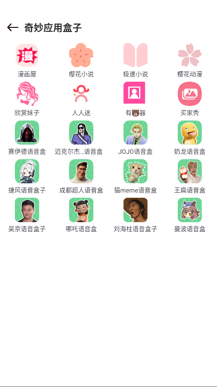 1.请在本站下载安装并打开奇妙应用盒子app,可以看到内部有着不同种类的软件。