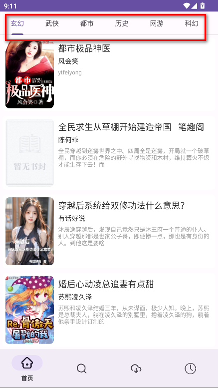 4.在上方点击自己喜欢的小说类型,接着随机点击一部小说。
