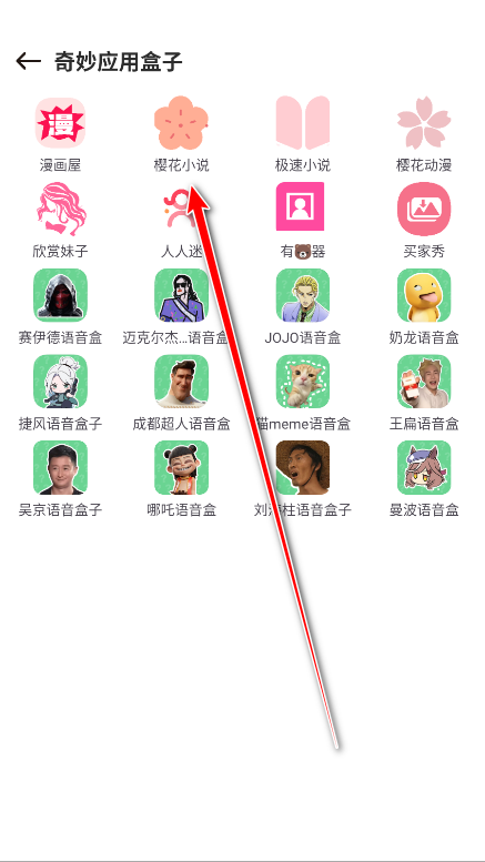 2.大家喜欢哪个软件就直接点击图标就好。在这里小编以点击樱花小说为例。