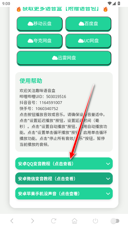 3.继续往下滑,会看到三种变音教程,小编以点击第一种变音教程后面的点击查看为例。