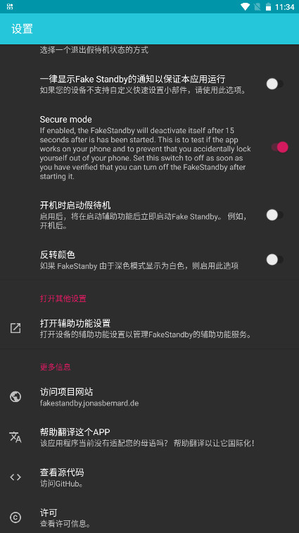 1.打开FakeStandby,下滑并找到开机时启动假待机选项。