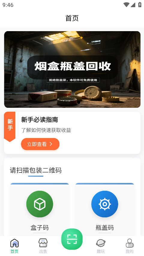 1.打开盒天下,可以看到本软件支持回收烟盒和瓶盖。