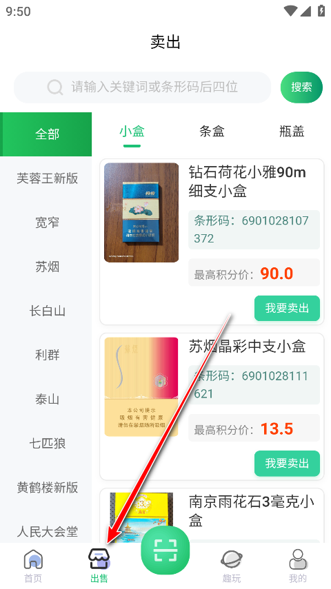 3.点击下方的出售,可以看到不同种类的烟盒卖出价格。