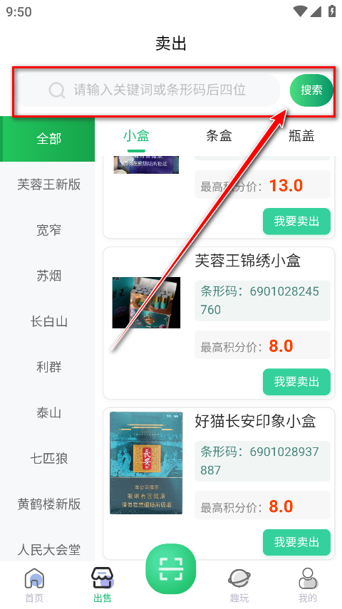 4.在搜索框输入关键字或者条形码后四位,点击搜索即可找到自己想要的。