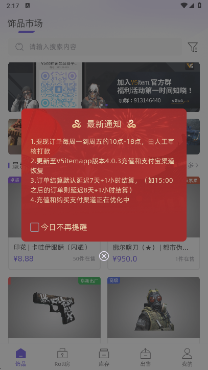 V5item您与全球玩家实时交流的桥梁;是您获取最新市场资讯的窗口;是您实现买卖自由供求的集市。它支持购买、求购、供应、还价等多元交易方式,全方位满足您的需求;它提供清晰透明的价格走势,帮助您制定合理的策略;它汇聚志同道合的饰品爱好者,共享游戏与收藏的快乐。它打破地域限制的隔阂,让您与世界玩家同台交易;它优化用户界面的设计,让您的操作体验更加流畅;它丰富您的游戏外延体验,让CSGO的乐趣加倍延伸。
