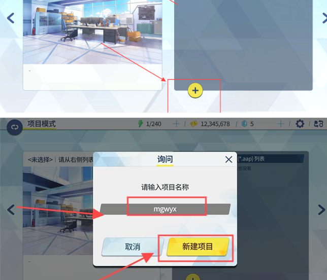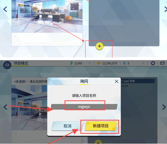 5、然后在项目模式的情景下点击+,创建一个项目名称
