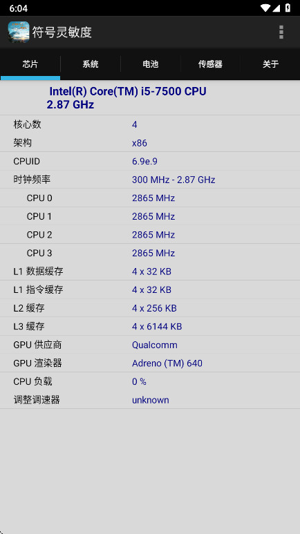 1、首先打开符号灵敏度app,可以查看手机的芯片参数;