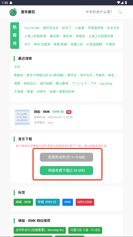 3.这里可以直接下载转存到网盘,使用网盘下载,或者在线试听歌曲。