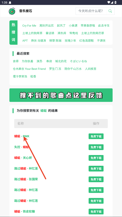 1.点击上方搜索框,输入关键词检索你想要收听的歌曲。