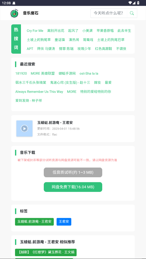 音乐魔石是一款集在线搜歌、试听与免费下载于一体的音乐应用。用户可以通过该应用轻松搜索到自己喜欢的歌曲,在线试听并享受高质量的音频体验。同时,音乐魔石还提供免费下载功能,让用户能够将心仪的音乐保存在本地,随时随地离线播放。其简单易用的界面和强大的搜索功能,使得用户在享受音乐的同时,获得更高效便捷的听歌体验。