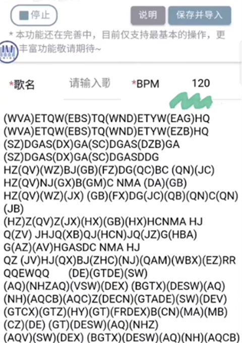 7、点击右上角“保存并导入"按钮,即可将曲谱导入至悬浮窗内演奏。