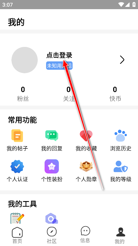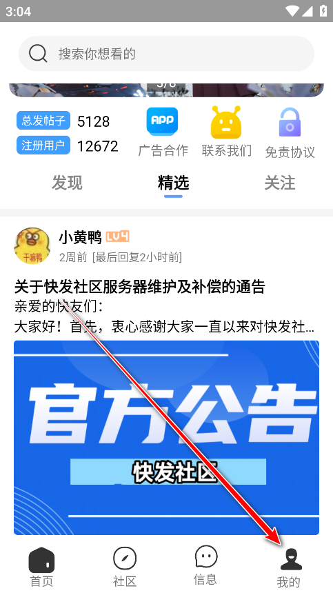 1.打开快发社区,点击右下角我的。