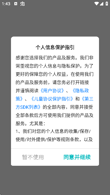 下载并安装“零玩游戏盒”APP,完成安装后点击打开,首先请同意用户协议和隐私政策