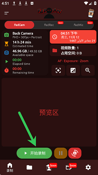 4、接着进入界面中点击【开始录制】即可在后台进行录制
