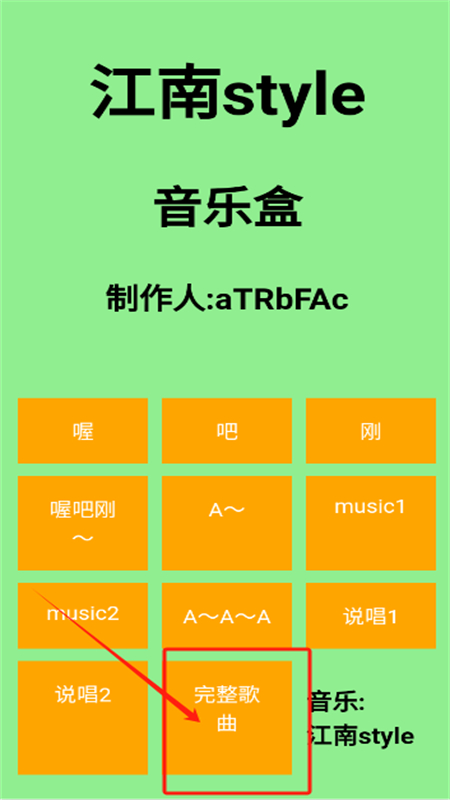 江南style音乐盒子app支持用户根据需要点击播放歌曲的精彩片段,让每一个高潮都能随时被引爆;它允许用户随时切换播放魔性的音效素材,让每一个瞬间都充满搞怪趣味;它也能提供完整曲目的播放功能,让您能完整享受歌曲的独特魅力。它将冗长的音乐切分为灵活的片段按钮,它将复杂的播放控制简化为直观的点击反馈,它将一整首歌曲分解为可控的独立音源。它是您派对聚会的气氛调节器,能用魔性的节奏瞬间点燃全场;江南Style音乐盒子是您日常消遣的解压小工具,能用滑稽的音效赶走所有烦恼。