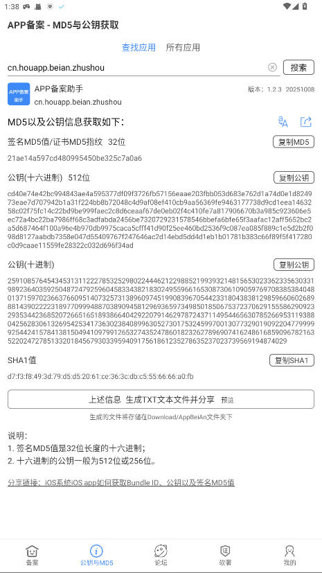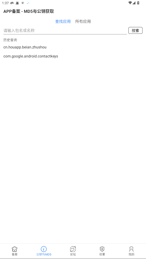 3.在主界面选择“公钥与MD5”模块。输入包名或者名称