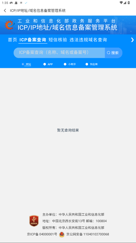 2.跳转到官方查询平台,输入app名字或者网站查询即可