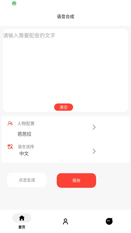 1.打开角色语音合成app,请先输入需要配音的文字。