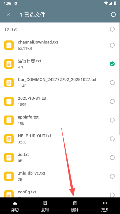 3、如果想要删除某一项文档,只需选中文档点击底部删除即可