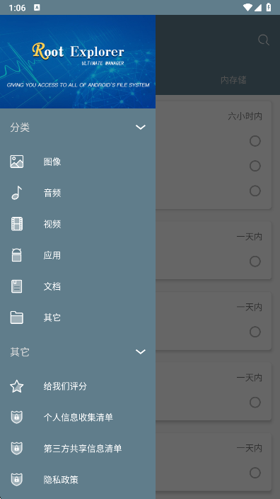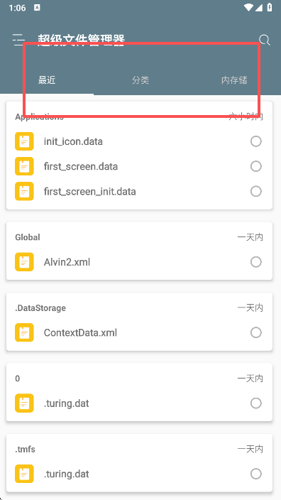 2、点击左上角三条横杠图标可以查看图像、音频、应用和文档等内容