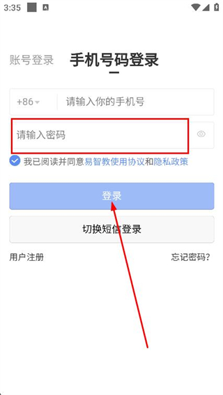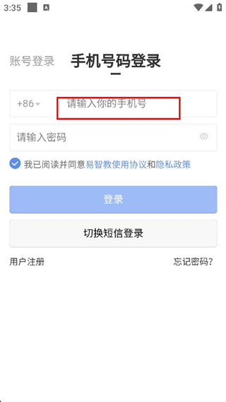 2、点击输入框,在输入框中填写需要登录的手机号。