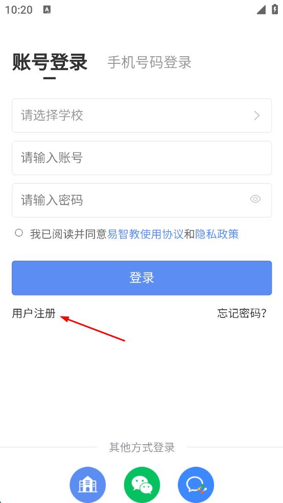3、在账号登录页面,若没有账号,点击“用户注册”,进入到注册页面。