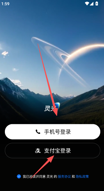 2、使用者可通过个人支付宝账号一键登录或是手机号码快速登录。