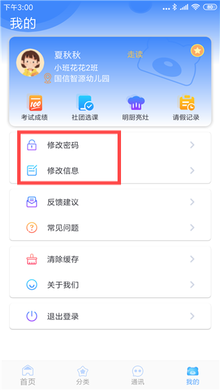 3、在我的界面您可以对个人信息进行安全设置与资料更新,点击修改密码或修改信息,可进行个人信息的安全设置与资料更新。