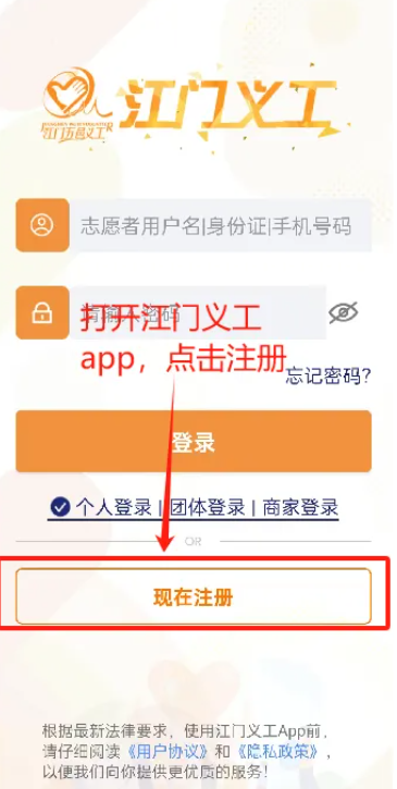 1、义工个人在“江门志愿者”网登陆义工账号和密码。