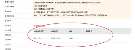 7、申请成功后,可在“我的义工证”栏目进行办证情况的跟踪。