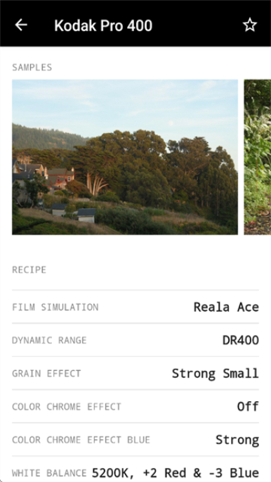 1、在 FujiXWeekly App 中,选择一个你喜欢的胶片配方(例如,“Kodak Gold 200”)。