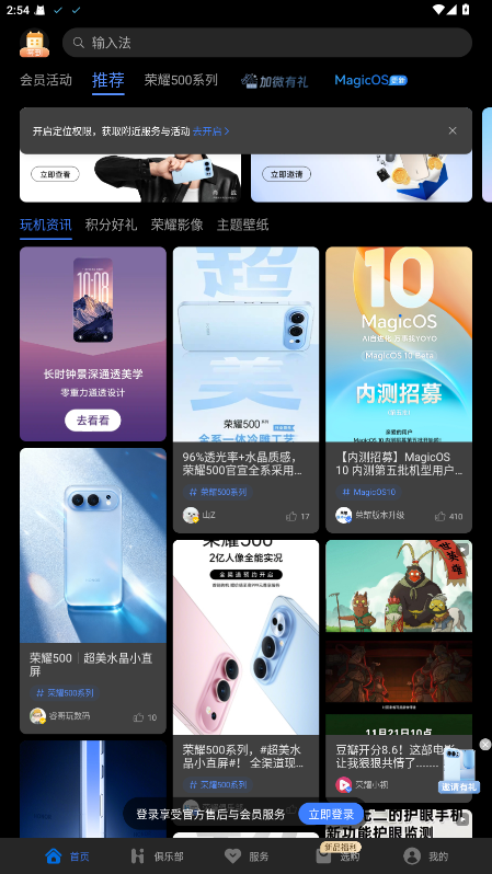 我的荣耀 APP 是荣耀粉丝的专属聚集地,官方商城可一站式购入全品类智能产品,正品低价兼具专属优惠。俱乐部板块能结交同好、分享使用技巧,参与主题活动与挑战即可赢取限定奖品。这里有第一手品牌资讯、真实用户评价,还有设备性能检测、备件价格查询、维修数据备份等实用服务。从购物种草到售后支持,从孤独使用到社群互动,让你在玩转荣耀产品的同时,收获满满福利与归属感。