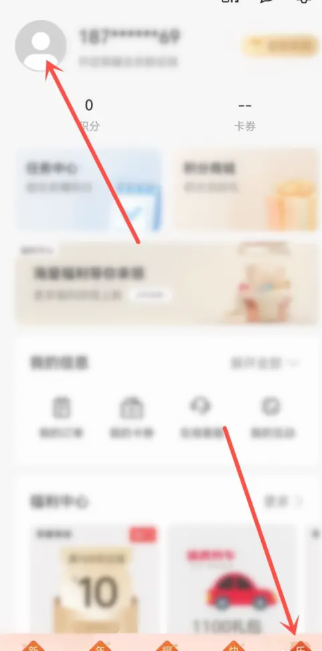 1.打开app我的页面,点击左上角“个人头像”图标。
