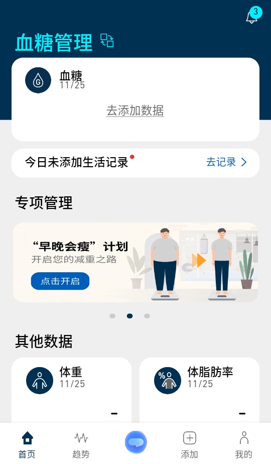 9.进入到主页后就可以对我们的所需要的健康项目进行管理了。