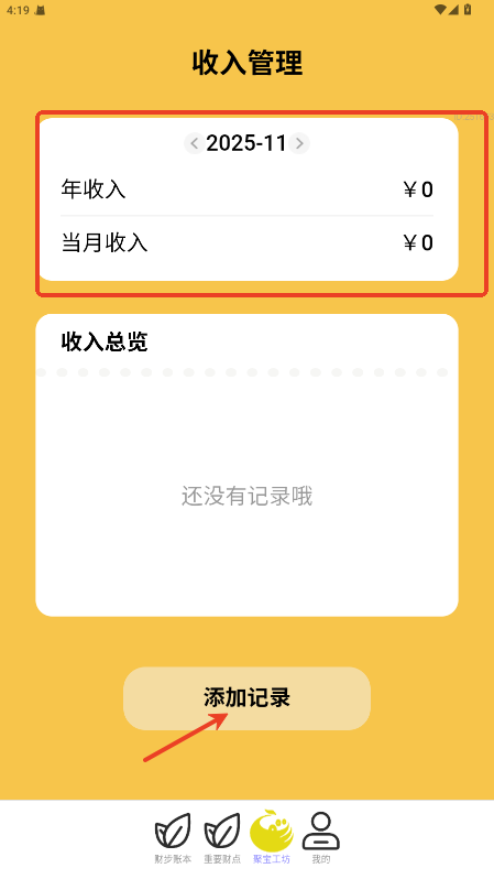 6.在 “聚宝工坊” 中记录个人年收入、月收入信息,借助平台展示功能掌握自身收入状况。