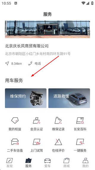 2、点击服务选项进入服务页面,可查看用车服务如维保预约、道路救援等,还有我的权益、会员认证等功能。
