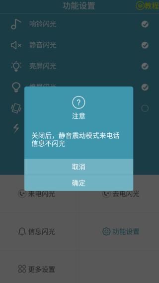 4、亮屏闪光也能随时关闭,带来的影响大家也能知晓,关闭很简单。