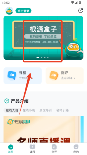 1、下载并打开根源盒子app,完成注册登录,在主界面选择适合自己学段的课程内容。