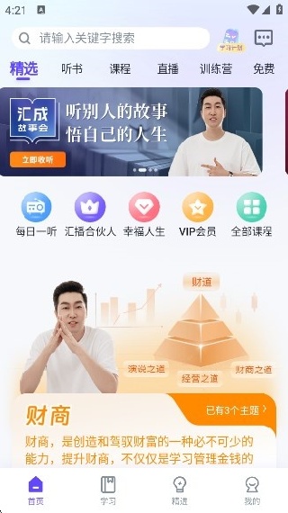 汇播学堂 —— 财商教育与个人成长的优质选择,秉承 “财商改变思维、知识改变命运” 的初心,凭借 AI 技术赋能与专业课程体系,已服务超百万用户开启成长之旅。三大核心模块精准发力:财商模块重塑财富认知、幸福人生模块解锁生活智慧、事业有成模块突破发展瓶颈。平台坐拥丰富免费资源,涵盖财商、个人成长类听书与音视频,支持在线听书、电子书等多种学习形式,随时随地便捷提升。课程聚焦实践应用,由业内专家匠心打造,让知识获取零门槛,助力用户掌握创富技能、实现全面成长。