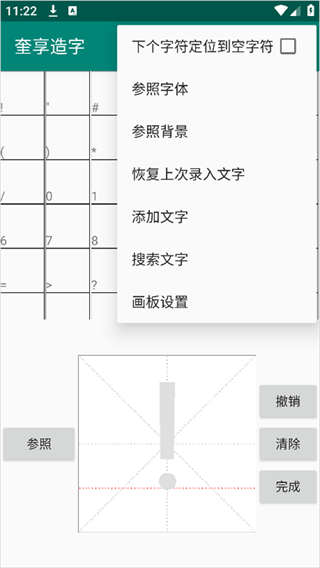 3、选择一个字库后,你可以开始创作自己的字体。如果你想基于某个现有字体进行设计,可以选择它作为参考。