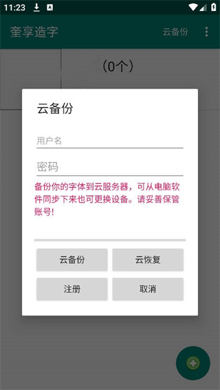 5、完成创作后,你可以通过云备份功能保存字体,并在APP内直接下载使用。