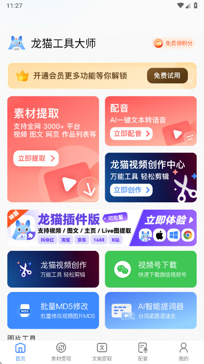 龙猫工具大师app来咯,选择龙猫工具大师,您将拥有简洁直观的操作界面,告别复杂的学习流程;您将拥有流畅稳定的运行体验,告别卡顿的系统困扰;您将拥有强大全面的功能矩阵,告别反复切换应用的烦恼;它是自媒体人日常运营的必备神器,助您轻松应对多平台的内容分发;它是内容创作者高产输出的幕后推手,助您实现作品质量的快速飞跃;它能快速处理热门的视频素材,助您抢占流量热点的先机;它能批量优化海量的图文内容,助您实现运营效果的最大化;它致力于打造最强的素材处理工具,让您的自媒体之路更加顺畅。