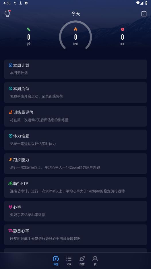 2、在底部的“体能”栏目,用户可以查看本周计划,以及今天消耗的热量。从而计划运动。