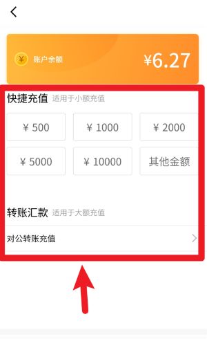 3、在账户余额界面,用户可以选择快速充值常用金额,也可以通过对公转账方式进行大额充值操作。
