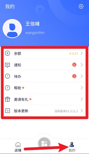 4、点击底部“我的”选项卡,可进入个人中心查看余额、通知、待办事项、帮助信息及版本更新内容。