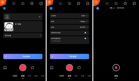 1、打开ZY CAMI连接设备后可直达或左右滑动下方菜单进入「直播」界面,在这里可以看到有:快手直播、Restream(直播平台推流媒介)、Rtmp(网址推流)。